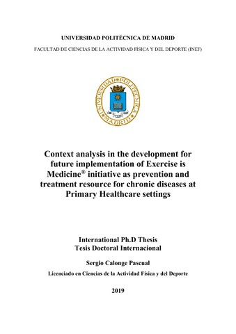 | Título: | Context analysis in the development for future implementation of Exercise is Medicine® initiative as prevention and treatment resource for chronic diseases at Primary Healthcare settings |