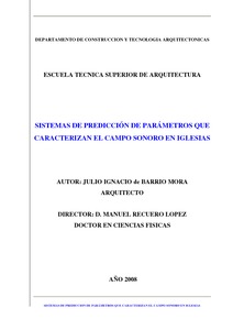 | Título: | Sistemas de predicción de parámetros que caracterizan el campo sonoro en iglesias |