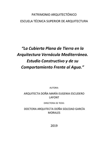 | Título: | La cubierta plana de tierra en la arquitectura vernácula mediterránea : estudio constructivo y de su comportamiento frente al agua |