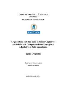 En la presente tesis, se propone un modelo cognitivo híbrido y original, denominado "Metáfora", cuyas aportaciones principales son: (1) la integración de teorías multi-disciplinares -- psicocognitivas, neurológicas, biológicas, de inteligencia artificial, etc. -- sobre la cognición; (2) un diseño arquitectónico basado en bloques de construcción cibernéticos, que adapta lo mejor de los modelos cognitivos más representativos -- diseño por capas, modular, multi-componente, descentralizado, y distribuido; (3) la fusión de los principios propuestos tanto por la aproximación cognitivista como por la aproximación emergente, y la definición de los mecanismos de integración y sincronización necesarios para comunicar estos dos niveles; y (4) un diseño innovador que articula tres niveles de auto-organización inspirados en principios de la biología evolutiva y del desarrollo: la autopoiesis, la epigénesis, la ontogénesis, y la filogénesis, a partir de los cuales emergen las diversas estructuras cognitivas de la arquitectura.