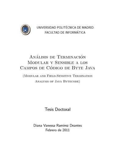 | Título: | Modular and Field-Sensitive Termination Analysis of Java Bytecode = Análisis de Terminación Modular y Sensible a los Campos de Código de Byte Java |