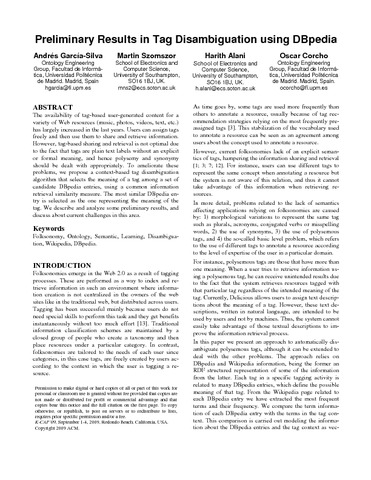 | Título: | Preliminary Results in Tag Disambiguation using DBpedia |