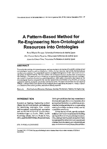 | Título: | A Pattern-Based Method for Re-Engineering Non-Ontological Resources into Ontologies |