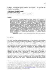 | Título: | CALIOPE: herramienta para gestionar un corpus y un glosario de términos informáticos |
