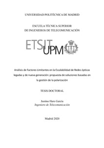 | Título: | Análisis de Factores Limitantes en la Escalabilidad de Redes ópticas legadas y de nueva generación: propuesta de soluciones basadas en la gestión de la polarización |