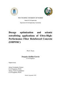| Título: | Optimización de dosificaciones de hormigones de ultra altas prestaciones reforzados con fibras (UHPFRC) y aplicaciones como material de refuerzo sísmico = Dosage optimization and seismic retrofitting applications of Ultra-High-Performance Fiber Reinforced Concrete (UHPFRC) |
