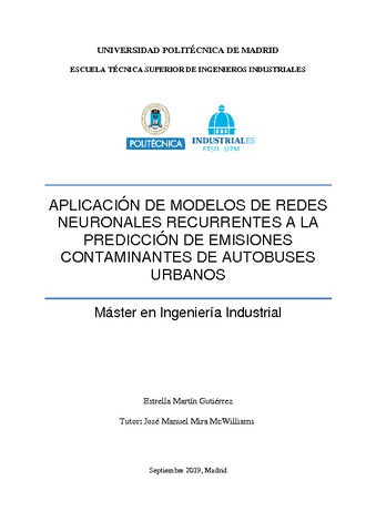 | Título: | Aplicación de modelos de Redes Neuronales Recurrentes a la predicción de emisiones contaminantes de autobuses urbanos |
