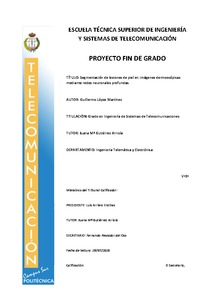 A día de hoy, el cáncer es una de las principales causas de muerte en el mundo. Este trabajo pondrá su atención en el melanoma, un cáncer que afecta a la piel. La principal herramienta que se tiene para luchar contra esta enfermedad es un diagnóstico precoz, ya que aumentará en gran medida las posibilidades de curación. El proyecto consistirá en la creación de una aplicación capaz de segmentar automáticamente una lesión de la piel (no todas las lesiones son melanomas), para que posteriormente se pueda proceder a la clasificación. Se utilizará la técnica del Deep Learning aplicada a la segmentación de imágenes que consistirá en el entrenamiento de una red neuronal. Se ha utilizado la red neuronal convolucional PSPNet mediante la introducción de las imágenes para entrenamiento obtenidas del International Skin Image Collaboration con su correspondiente segmentación hecha por un especialista. Para la medición de los resultados se ha utilizado el índice de correlación Jaccard. Este índice variará de 0 a 1, siendo 1 una segmentación perfecta. En un primer lugar, el resultado fue un índice Jaccard medio de 0,704. Tras este resultado se procedió a realizar una mejora en la que las segmentaciones que salían con múltiples formas diferenciadas debido a factores propios de la imagen original, se quedaban únicamente con su contorno más centrado, ya que es en el centro de la imagen donde por normalidad se va a encontrar la lesión. Después de realizar esta mejora, el resultado final ha sido de 0,721 lo que es considerado un buen resultado partiendo de la base de que se fijó como objetivo un umbral de 0,7 al principio de este proyecto.