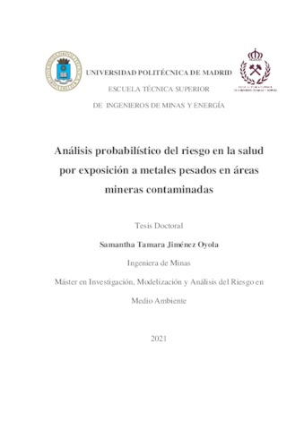 | Título: | Análisis probabilístico del riesgo en la salud por exposición a metales pesados en áreas mineras contaminadas |