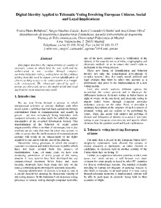 | Título: | Digital Identity Applied to Telematic Voting Involving European Citizens. Social and Legal Implications |