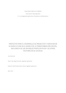 | Título: | Proyectos para el desarrollo de productos y servicios en la agricultura en el marco de la transformación digital. Influencia de los enfoques participativos y de otros factores en su eficacia |