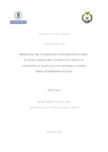 El sector de la construcción representa el 40% del consumo energético total de la Unión Europea. La UE aspira a ser neutral desde el punto de vista climático para 2050, una economía con cero emisiones de gases de efecto invernadero. La importancia de la eficiencia energética en los edificios es innegable; El sector inmobiliario es un activo de inversión en crecimiento que proporciona empleo, ingresos y constituye una parte importante del producto interior bruto de las economías nacionales. En las últimas décadas los arquitectos han recurrido al vidrio para lograr no solo un alto grado de luz natural, uniformidad exterior y una estética atractiva, sino también proyectos con elevado rendimiento térmico. Los materiales transparentes utilizados en las envolventes de edificios contribuyen a aumentar las cargas térmicas de calefacción y refrigeración de un edificio. El uso del vidrio requiere resolver problemas relacionados con la ganancia y pérdida de calor, así como con la luz natural. El acristalamiento de flujo de agua (WFG) es una tecnología disruptiva que incluye vidrio como parte del sistema de calefacción, ventilación y aire acondicionado (HVAC). El agua es transparente a las longitudes de onda visibles, aunque captura la mayor parte de la radiación solar infrarroja. Como alternativa a los sistemas HVAC basados en combustibles fósiles, la energía absorbida puede transferirse a un depósito de inercia para su uso posterior o disiparse como un medio de enfriamiento evaporativo. Esta tesis contribuye al campo de las fachadas avanzadas de edificios mediante la aplicación de la investigación experimental de las envolventes WFG, que gestionan activamente el flujo de energía y la transferencia de calor entre el edificio y su entorno exterior. Para evaluar esta característica dinámica de las fachadas WFG, se aplica una metodología robusta basada en modelos matemáticos simplificados que predicen el comportamiento térmico de la envolvente WFG. Los datos de simulación se compararon con los datos reales de los distintos prototipos construidos. Los demostradores analizados enriquecieron la metodología por estar construidos en diferentes ubicaciones y orientaciones. Algunos de los demostradores eran prototipos a escala y otros edificios reales, tanto de obra nueva como de rehabilitación. Además, también se evaluaron diferentes estrategias energéticas y composiciones de vidrio, como la absorción y la reflexión de la energía solar. El hallazgo más relevante de esta investigación verifica la condición dinámica de los sistemas WFG a través los valores de U y de g variables. En la fachada sur del prototipo Sofa, el valor U varió de 1.041 a 0.066, mientras que el factor g varió de 0.592 a 0.24 con caudal másico de 0 L/m2 min o 2 L/m2 min. Además, la tecnología WFG se puede integrar con bombas de calor de agua - agua o aire - agua, lo que proporciona un incremento del coeficiente de rendimiento (COP) de la máquina. El prototipo de DMAIA mostró un COP mejorado pasando 2,90 a 3,62, con una temperatura exterior de 35°C y una temperatura de la cámara de agua de 18°C. La principal conclusión de esta tesis es que la envolvente WFG contribuye a la eficiencia energética, reduciendo las emisiones de CO2 y aumentando el confort en el interior de los edificios acristalados. La evaluación del ciclo de vida de los sistemas WFG mostró consistentemente una mayor inversión inicial que el acristalamiento tradicional. El coste final del ciclo de vida demostró que los sistemas WFG solo mejoran al doble acristalamiento tradicional durante la fase de operación. Sin embargo, una evaluación energética del ciclo de vida a lo largo de 50 años concluyó que se podrían lograr ahorros de energía entre el 36% y el 66% y una reducción de las emisiones de CO2 entre el 30% y el 70%. Finalmente, la conclusión más llamativa reveló que el confort térmico se podría conseguir mediante superficies radiantes WFG, con temperaturas interiores entre 25 y 27°C. La temperatura media radiante osciló entre 18 y 22°C, y la opinión media estimada osciló entre -0,5 y +0,1, clasificado en la escala térmica como “Ligeramente frío”. En general, esta tesis ha demostrado que un conjunto de ecuaciones algebraicas de un modelo matemático simplificado ayuda a los arquitectos e ingenieros a comprender el comportamiento complejo de las envolventes WFG dinámicas en una etapa temprana del proyecto. Una posible investigación futura podría desarrollar un modelo matemático completo y su integración en softwares comerciales para validar la hipótesis en un estado transitorio a lo largo de los años. ----------ABSTRACT---------- The building sector accounts for 40% of the European Union’s total energy consumption. The EU aims to be climate neutral by 2050, an economy with net-zero greenhouse gas emissions. The importance of energy eficiency in buildings is undeniable; the real estate sector is a growing investment asset that provides employment, income, and a high percent of gross domestic product of national economies. During the last decades architects have employed glass to attain not only a high degree of daylight, outdoor uniformity, and attractive aesthetics but thermal performance conditions in their projects. The transparent materials used in building envelopes contribute to increasing the heating and cooling loads of a building. The use of glass requires solving issues regarding heat gain, heat loss, and daylight. Water fow glazing (WFG) is a disruptive technology that includes glass as part of the Heating, Ventilation and Air Conditioning (HVAC) system. Water is transparent to visible wavelengths, though it captures most of the infrared solar radiation. As an alternative to fossil fuel-based HVAC systems, the absorbed energy can be transferred to a bufer tank for later use or dissipated as a means of free-cooling. This thesis contributes to the feld of advanced building