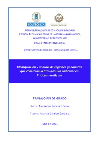 | Título: | Identificación y análisis de regiones genómicas que controlan la arquitectura radicular en Triticum aestivum |