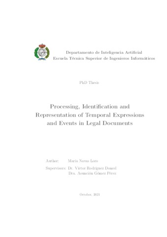 | Título: | Processing, Identification and Representation of Temporal Expressions and Events in Legal Documents |