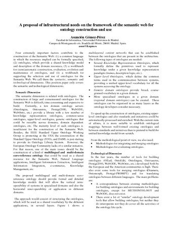 | Título: | A proposal of infrastructural needs on the framework of the semantic web for ontology construction and use |