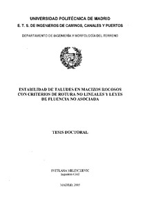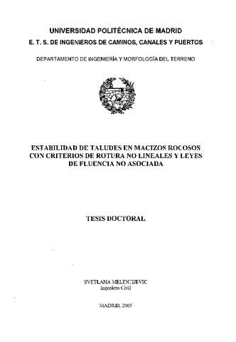 | Título: | Estabilidad de taludes en macizos rocosos con criterios de rotura no lineales y leyes de fluencia no asociada |