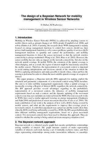 | Título: | The design of a Bayesian Network for mobility management in Wireless Sensor Networks |