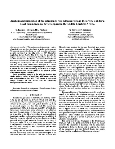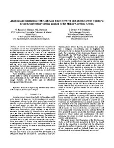 | Título: | Analysis and simulation of the adhesion forces between clot and the artery wall for a novel thrombectomy device applied to the Middle Cerebral Artery |