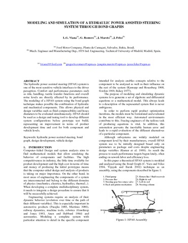 | Título: | Modelling and simulation of a hydraulic power assisted steering system through Bond Graphs |