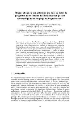 | Título: | ¿Pierde eficiencia con el tiempo una base de datos de preguntas de un sistema de autoevaluación para el aprendizaje de un lenguaje de programación? |