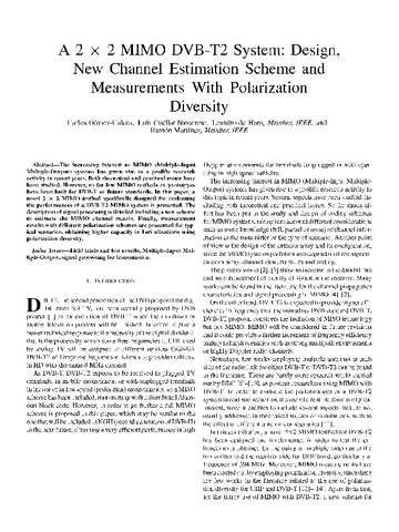 | Título: | A 2x2 MIMO DVB-T2 System: Design, New Channel Estimation Scheme and Measurements With Polarization Diversity |