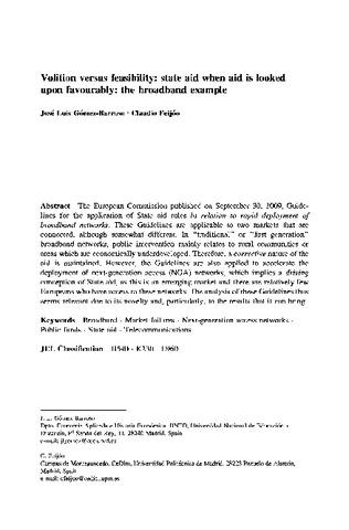 | Título: | Volition versus feasibility: state aid when aid is looked upon favourably: the broadband example |