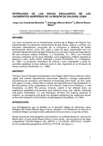 | Título: | Petrología de las rocas encajantes de los yacimientos auríferos de la región de Holguín, Cuba |