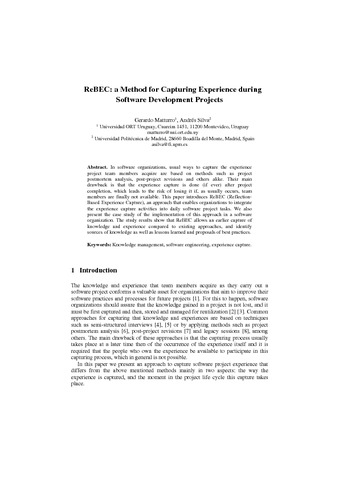 | Título: | ReBEC: A Method for Capturing Experience during Software Development Projects |