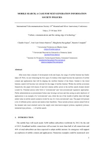 After more than a decade of development work and hopes, the usage of mobile Internet has finally taken off. Now, we are witnessing the first signs of evidence what might become the explosion of mobile content and applications that will be shaping the (mobile) Internet of the future. Similar to the wired Internet, search will become very relevant for the usage of mobile Internet. Within the mobile ecosystem framework, this paper will discuss if and how intense public action in the mobile search domain should (could) be. Potential actions refer both to ‘conventional’ and 'non-conventional' regulatory approaches. Public administrations as procurement bodies may leverage services and thus acting as early deployers of applications is an example of a ‘conventional’ case, while the use of the wealth of public data with high added value in mobile search scenarios would be one of a ‘non-conventional’ case. The paper will present a list of different policy options and analyse their feasibility. These include policies options aimed both at the demand side (user-oriented) and at the supply side (innovation-support policies, regulatory policies, industrial-type policies, …) of mobile search.