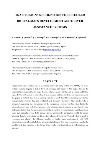 | Título: | Traffic signs recognition for detailed digital maps development and driver assistance systems |