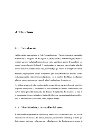 Los algoritmos de búsqueda de un agente son, en principio, una técnica muy útil para la construcción de sistemas inteligentes. Sin embargo, su estudio se ha restringido habitualmente a pocos dominios, en casos muy restringidos y, en términos generales, no existe una comprensión definitiva sobre su comportamiento. Por lo tanto, esta tesis está dedicada al estudio de algoritmos de búsqueda de un agente, con el propósito de caracterizar su comportamiento en un entorno que garantice la igualdad de condiciones en dos dominios de muy diversa naturaleza, y que sirvan para caracterizar su utilidad y la forma en que pueden mejorarse, fundamentalmente con el uso de estrategias bidireccionales, o de perímetro, con las que es posible mejorar muy significativamente los resultados obtenidos. Para ello, se ha empleado el algoritmo unidireccional RBFS y se proponen dos versiones bidireccionales, los algoritmos BRBFS* e IBRBFS*, y una versión de perímetro, el algoritmo RBFPS*. Asimismo, se propone también una versión de perímetro, denominada, DFBnBPS*, del algoritmo unidireccional de ramificación y acotación en profundidad. Por último, introduce conceptos novedosos sobre la utilidad de los algoritmos de este tipo, tradicionalmente circunscritos a la resolución de problemas de optimización con descripciones explícitas y únicas de los nodos finales, que servirán para generalizar la descripción de los nodos origen y final con el uso de formulaciones lógicas que deben ser necesariamente satisfechas. ABSTRACT Single-agent search algorithms are, at first, a very useful technique for constructing intelligent systems. However, their study has been severely restricted to a few very well-defined domains and, in general terms, there is not a comprehensive description of their behaviour. Thereby, this thesis is devoted to the research in single-agent search algorithms, with the main purpose of characterizing its behaviour. For that, a computational environment which guarantees the same conditions for all the algorithms in two very different domains has been devised. Besides, it is considered the way they can be improved, mainly with the use of bidirectional strategies which lead to significant improvements. For that, the RBFS search algorithm is employed and two new bidirectional versions of it are proposed, BRBFS* and IBRBFS*, along with a perimeter versión of the same algorithm, called RBFPS*. Likewise, a new perimeter search algorithm is introduced, the DFBnBPS*, which employs the dept-first branch-and-bound search algorithm. At last, it introduces new concepts about the utility of the algorithms of this category. Indeed, a new framework is presented where the same search algorithms can be used for any logical description of start and goal nodes. This approach guarantees a wider aplicability, as long as the same set of search algorithms have been traditionally dedicated to the task of solving optimality problems with explicit descriptions of unique goal states.